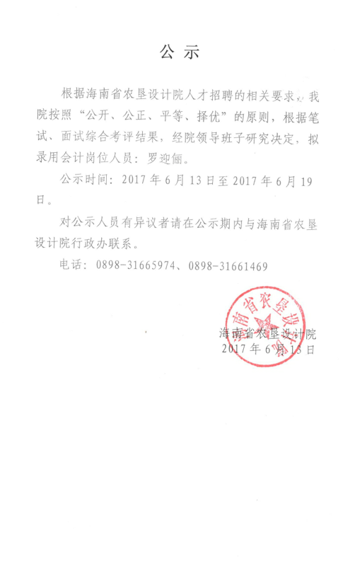 海南省農(nóng)墾設計院有限公司招聘公告