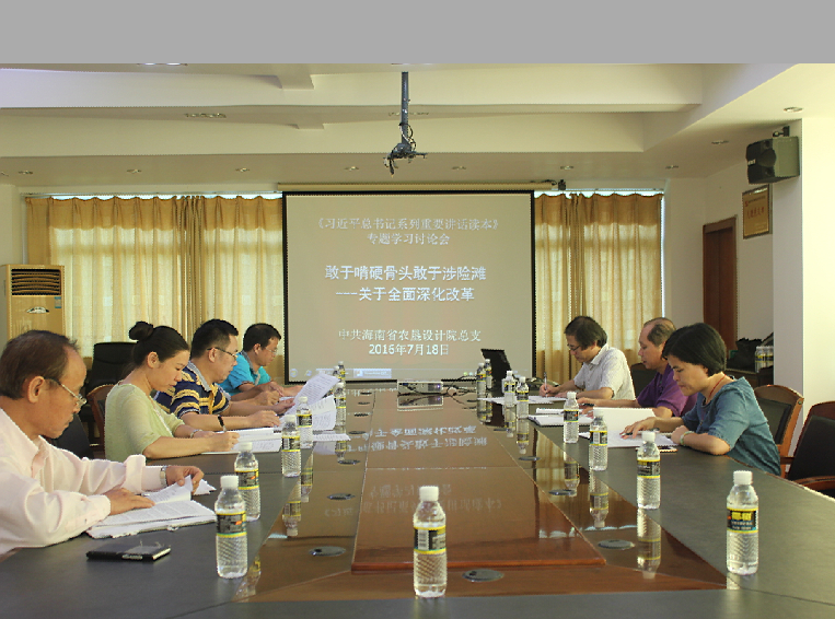 2016年7月18日下午,院總支支委在三樓會(huì)議室開(kāi)展“兩學(xué)一做”--《習(xí)近平總書(shū)記系列重要講話讀本》專題學(xué)習(xí)討論會(huì),主題為“敢于啃硬骨頭敢于涉險(xiǎn)灘---全面深化改革”,各支部書(shū)記參加了學(xué)習(xí)。會(huì)上,同志們結(jié)合習(xí)近平總書(shū)記講話圍繞院轉(zhuǎn)企改制及專業(yè)發(fā)展等進(jìn)行了探討??傊Ц睍?shū)記江國(guó)買要求各支部組織開(kāi)展本支部的學(xué)習(xí)討論,并要求參會(huì)同志在本次學(xué)習(xí)討論會(huì)的基礎(chǔ)上,深入思考,結(jié)合本職工作寫(xiě)出學(xué)習(xí)心得。