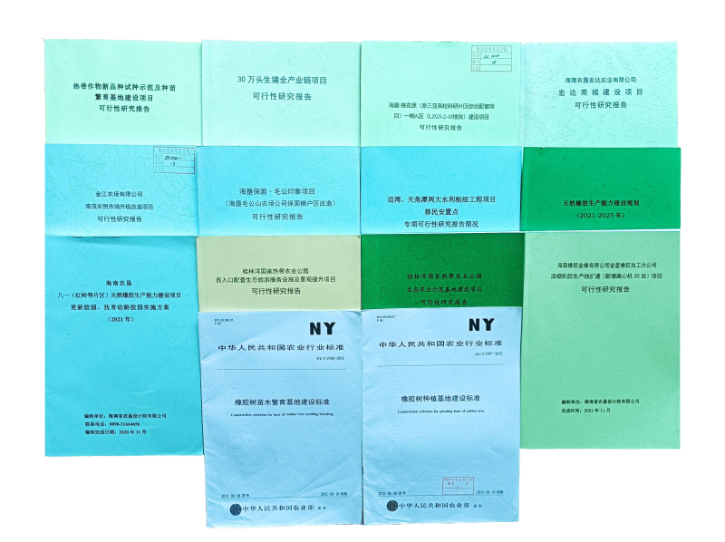編制的《橡膠樹種植基地建設標準》與《橡膠樹苗木繁育基地建設標準》獲得全國農業(yè)優(yōu)秀工程咨詢成果二等獎,《海南省高標準農田建設規(guī)劃》獲得海南省優(yōu)秀工程咨詢成果一等獎,《海南天然橡膠產(chǎn)業(yè)集團股份有限公司膠園更新種植建設項目可行性研究報告》《塞拉利昂共和國天然橡膠及水稻產(chǎn)業(yè)項目可行性研究報告》等項目成果分別獲海南省優(yōu)秀工程咨詢成果三等獎。《海南農墾天然橡膠基地建設項目可行性研究報告》曾多次獲得農業(yè)部及評審專家的一致認可及好評。