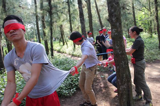 正式開班前,教練先是通過一系列輕松、愉快的小活動,營造團(tuán)隊(duì)氛圍,建立相互信任的基礎(chǔ)。緊接著在教練的指導(dǎo)下,全體人員分成三個小組在失聰失明、同步走、齊眉棍、穿越電網(wǎng)等項(xiàng)目上進(jìn)行了比拼。三個小組的實(shí)力不相上下,各有千秋,但他們比的不是高低,而是比你收獲了什么,感悟了什么,思考以前的工作方式與行為模式為自己的工作帶來了怎樣的阻礙,上傳下達(dá)的失真又為執(zhí)行力帶來了怎樣的影響等等。